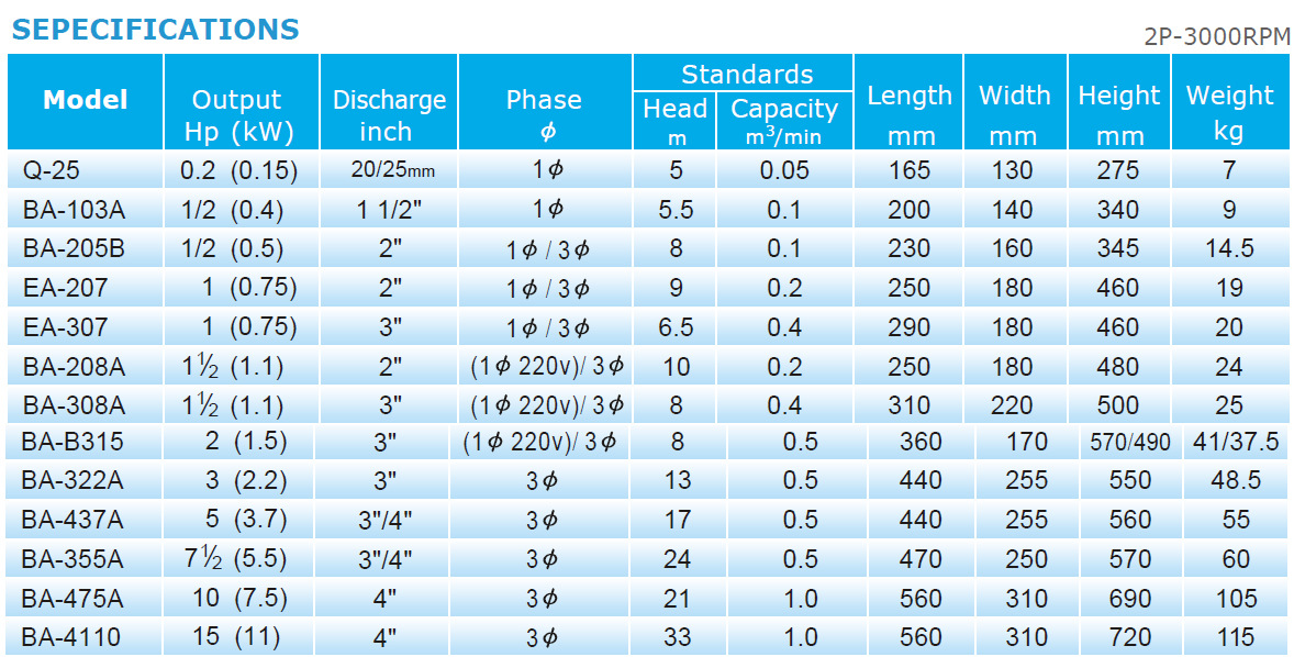松河BA-4110節能污水泵技術參數: